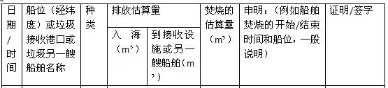 “.3 每次焚燒記錄須包含日期、時(shí)間、焚燒開始和結(jié)束時(shí)的船位(船舶經(jīng)緯度)、被焚燒垃圾的分類、每一類被焚燒的垃圾的估算量(以立方米計(jì));