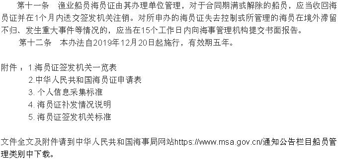 《<中華人民共和國(guó)海員證管理辦法>實(shí)施辦法》 2019年12月20日起施行!